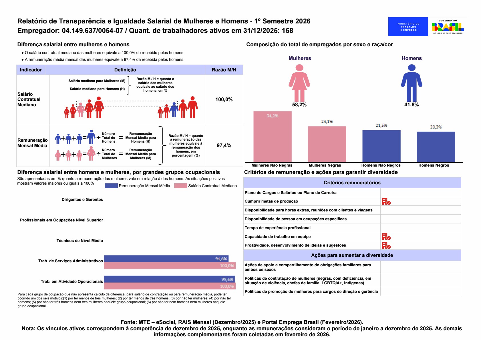 Em conformidade com essa legislação, o Grupo ABC divulga seu 1º ciclo de 2026 do Relatório de Transparência Salarial e de Critérios Remuneratórios. O material está organizado em documentos, abrangendo diversas localidades — como Alfenas, Araxá, Betim, Divinópolis, Guaxupé, Itajubá, Pouso Alegre, Uberaba e Varginha, entre outras — e apresenta as ações da empresa para assegurar equidade salarial e os critérios adotados para remuneração no ambiente de trabalho.