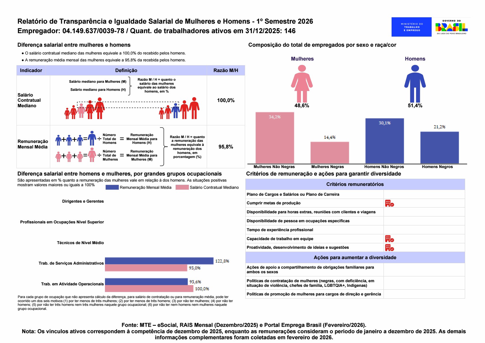 Em conformidade com essa legislação, o Grupo ABC divulga seu 1º ciclo de 2026 do Relatório de Transparência Salarial e de Critérios Remuneratórios. O material está organizado em documentos, abrangendo diversas localidades — como Alfenas, Araxá, Betim, Divinópolis, Guaxupé, Itajubá, Pouso Alegre, Uberaba e Varginha, entre outras — e apresenta as ações da empresa para assegurar equidade salarial e os critérios adotados para remuneração no ambiente de trabalho.