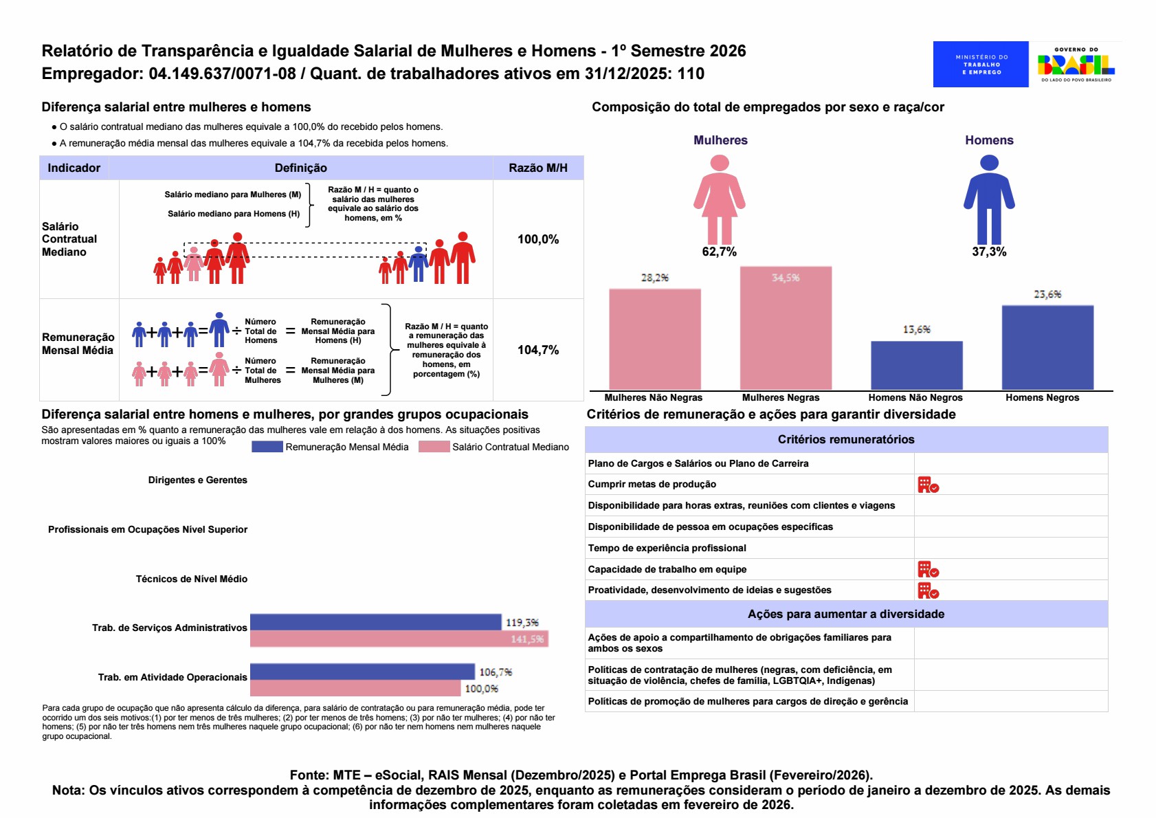 Grupo ABC divulga seu 1º ciclo de 2026 do Relatório de Transparência Salarial e de Critérios Remuneratórios.