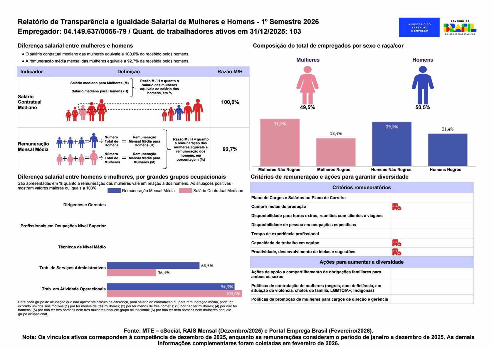 Grupo ABC divulga seu 1º ciclo de 2026 do Relatório de Transparência Salarial e de Critérios Remuneratórios.